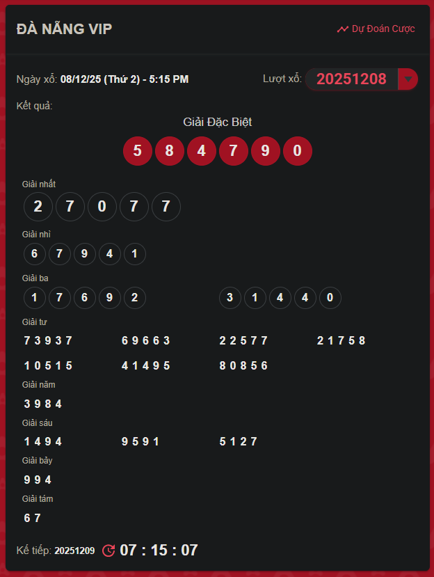 Thống kê kết quả XS Đà Nẵng VIP kỳ trước