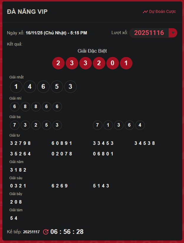 Thống kê kết quả XS Đà Nẵng VIP kỳ trước