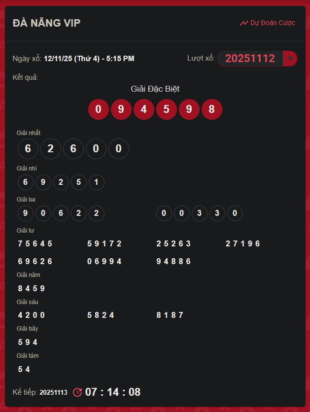 Thống kê kết quả XS Đà Nẵng VIP kỳ trước