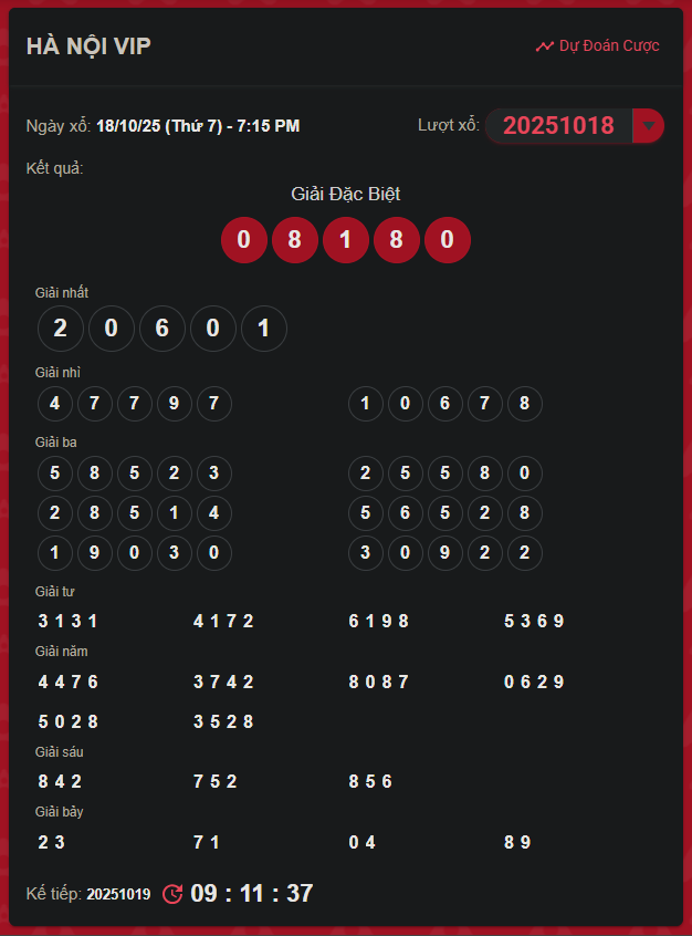 Chúc mừng tất cả anh em đã ăn rực rỡ xổ số VIP kỳ trước.