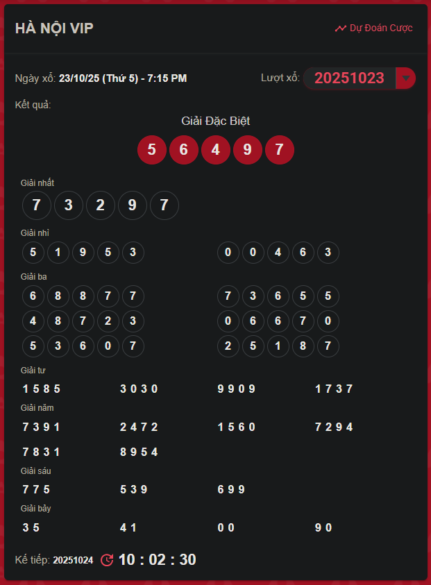 Chúc mừng tất cả anh em đã ăn rực rỡ xổ số VIP kỳ trước.