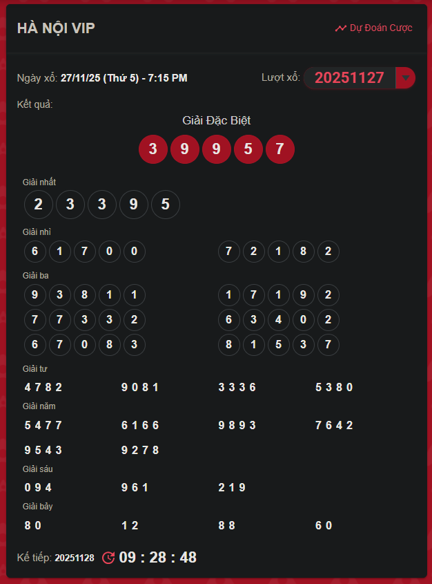 Thống kê kết quả XS Hà Nội VIP kỳ trước