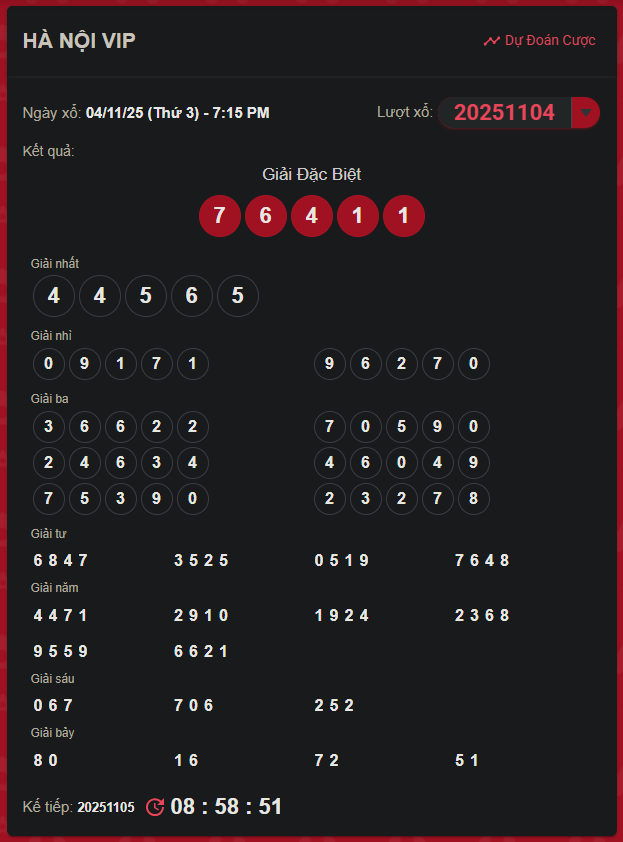 Thống kê kết quả XS Hà Nội VIP kỳ trước