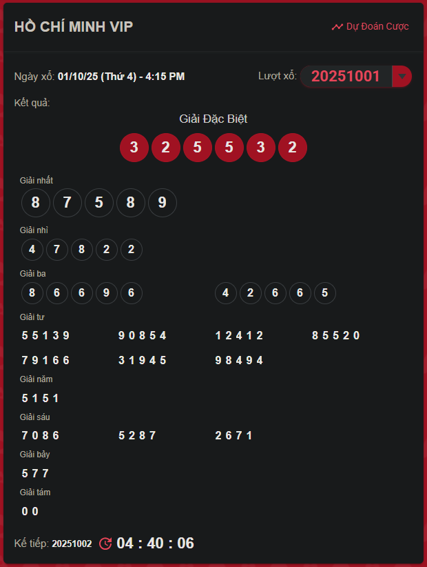 Chốt số lô dự đoán Hồ Chí Minh VIP hôm nay