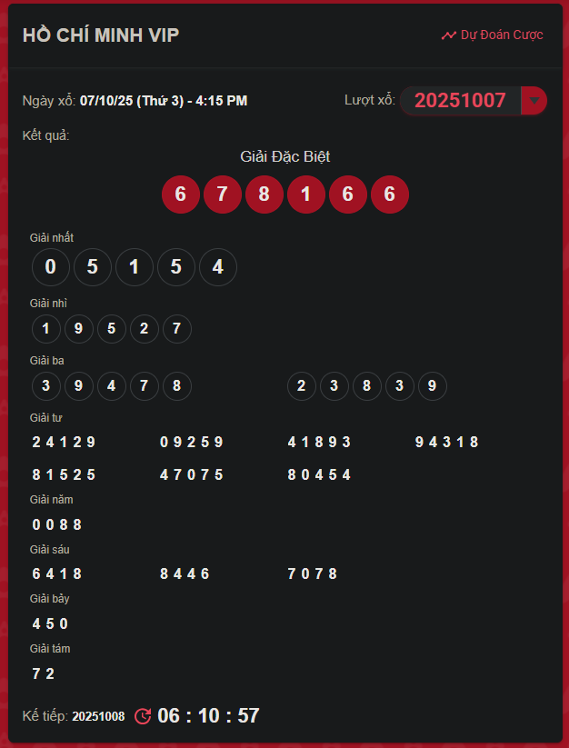 Thống kê kết quả XS Hồ Chí Minh VIP kỳ trước